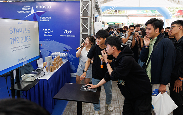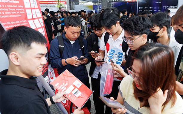 Sinh viên yêu thích công nghệ đến với DevDay Da Nang 2026 đã có cơ hội tham quan hơn 20 gian hàng để tìm hiểu ngành nghề, đồng thời tiếp cận nhiều thông tin về AI, dữ liệu, các sản phẩm số,…