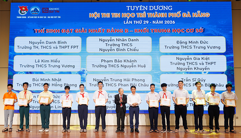 Diễn ra từ ngày 21 - 24/4/2026 tại Đại học Duy Tân, Hội thi Tin học trẻ thành phố Đà Nẵng lần thứ 29 do Liên ngành Đoàn TNCS Hồ Chí Minh và Sở Giáo dục & Đào tạo thành phố phối hợp tổ chức đã khẳng định sức lan tỏa mạnh mẽ của phong trào học tập, nghiên cứu và ứng dụng công nghệ thông tin trong thanh thiếu nhi.