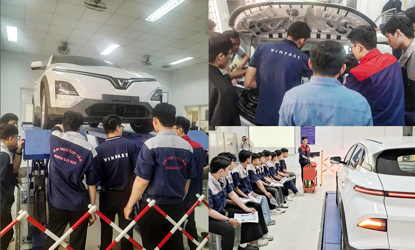 ĐH Duy Tân là một trong những cơ sở đào tạo trên cả nước được VinFast tài trợ 2 xe ô tô điện cùng nhiều thiết bị thực hành và giáo trình đào tạo kỹ thuật sửa chữa ô tô điện chuẩn chính hãng, góp phần thực hiện hiệu quả mô hình đào tạo song hành "Thực học - Thực nghiệm".