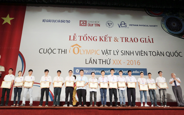 Sau 3 ngày tranh tài căng thẳng nhưng rất sôi nổi, hào hứng, sân chơi trí tuệ Olympic Vật lý sinh viên toàn quốc lần thứ XIX-2016 đã khép lại. Lễ tổng kết, trao giải cho các đoàn và các thí sinh giành thành tích cao được tổ chức trang trọng tại Nhà hát Trưng Vương-TP Đà Nẵng vào sáng 24/4/2016.