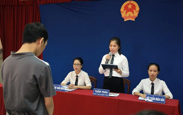 | Một phiên tòa giả định do các sinh viên Luật trường Đại học Duy Tân tổ chức công phu, gắn liền với ứng dụng thực tiễn. Ảnh: AN |