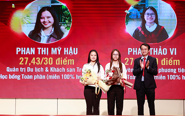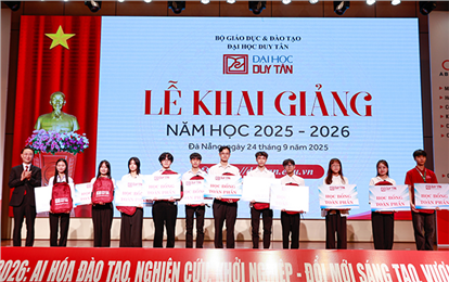 Trong niềm tự hào về những bước phát triển vượt bậc của Đại học Duy Tân, không khí càng tràn ngập niềm hứng khởi cho một hành trình học tập mới ở ngôi nhà chung Duy Tân của các Tân Sinh viên K31. Ngay trong Lễ Khai giảng năm học 2025-2026, Nhà trường đã trao Học bổng Toàn phần cho các “ngôi sao mới”: Thủ khoa - sinh viên Nguyễn Ngọc Diễm Quỳnh - ngành Truyền thông Đa phương tiện, đạt 28,55/30 điểm cùng các Á khoa gồm: sinh viên Phan Thị Mỹ Hậu - ngành Quản trị Du lịch & Khách sạn Troy, đạt 27,43/30 điểm và sinh viên Phan Thảo Vi - ngành Truyền thông Đa phương tiện, đạt 27,34/30 điểm.