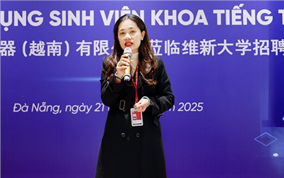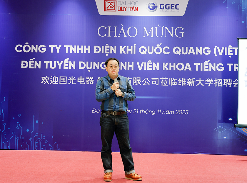 Công ty TNHH Điện Khí Quốc Quang (Việt Nam) - GGEC VN đã đến Đại học Duy Tân cùng giao lưu và trực tiếp tuyển dụng sinh viên của Khoa Tiếng Trung - Trường Ngôn ngữ & Xã hội Nhân văn vào chiều ngày 21/11/2025. Sự kiện đã mang đến cho sinh viên Khoa Tiếng Trung góc nhìn thực tế về định hướng nghề nghiệp trong môi trường doanh nghiệp có vốn đầu tư nước ngoài, cơ hội vận dụng tiếng Trung vào công việc cùng những kỹ năng “mềm” thiết yếu như: giao tiếp, làm việc nhóm, tác phong công nghiệp trong môi trường sản xuất chuyên nghiệp.