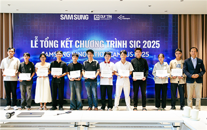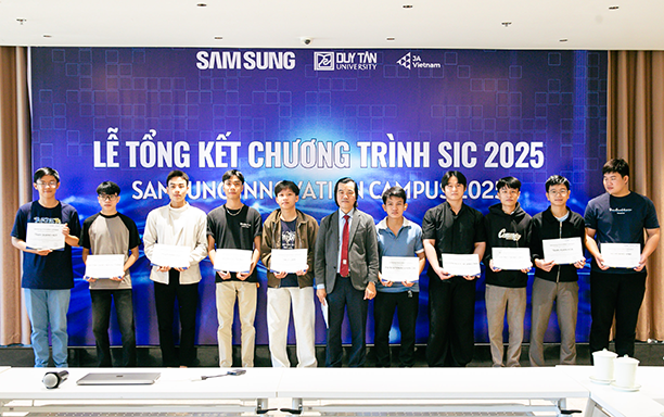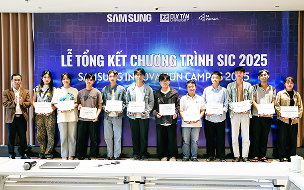 Sáng ngày 7/11/2025, Lễ Tổng kết và trao Chứng nhận hoàn thành khóa học Samsung Innovation Campus 2025 được tổ chức nhằm ghi nhận những nỗ lực, thành tích đáng tự hào trong suốt hành trình học tập và giảng dạy của giảng viên và sinh viên Đại học Duy Tân. Sự kiện còn là lời khẳng định cho tinh thần hợp tác giữa Công ty Samsung Electronics Việt Nam và Đại học Duy Tân trên hành trình ươm mầm tài năng trẻ và khơi dậy đam mê công nghệ cho thế hệ sinh viên tương lai.