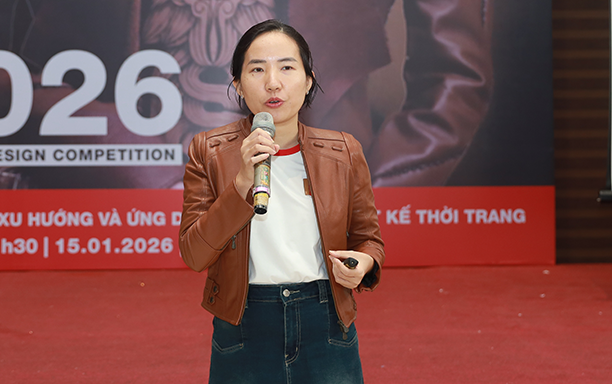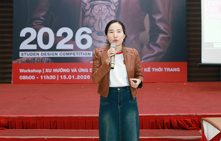 Tại Workshop, bà Nguyễn Minh Trâm - Đại diện Ban Tổ chức cuộc thi Thiết kế Sáng tạo Da Quốc tế “Real Leather. Stay Different Việt Nam 2026” đã mang đến cho sinh viên nhiều nội dung hữu ích về cuộc thi. Theo đó, cuộc thi Thiết kế thời trang quốc tế “Real Leather. Stay Different 2026” là tâm điểm của chiến dịch toàn cầu do Leather & Hide Council of America (LHCA) thực hiện, nhằm tôn vinh giá trị của da thuộc tự nhiên và bền vững - một sản phẩm tái chế từ ngành công nghiệp thực phẩm, đồng thời khuyến khích tận dụng nguồn da là sản phẩm phụ từ ngành sữa và thịt thay vì sử dụng vật liệu nhân tạo từ hóa dầu.