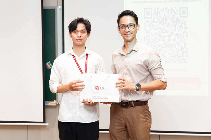 Sáng 1/4/2026, Trường Khoa học Máy tính & Trí tuệ Nhân tạo (SCA) cùng Khoa Đào tạo Quốc tế - Đại học Duy Tân đã phối hợp với LG Electronics (thông qua LG EDV Đà Nẵng) tổ chức seminar chuyên đề về cơ hội nghề nghiệp và chính thức phát động cuộc thi lập trình thường niên LG Dream Code 2026. Sự kiện đã thu hút đông đảo sinh viên ngành Công nghệ Thông tin tham gia, mở ra không gian kết nối giữa nhà trường và doanh nghiệp công nghệ hàng đầu thế giới.