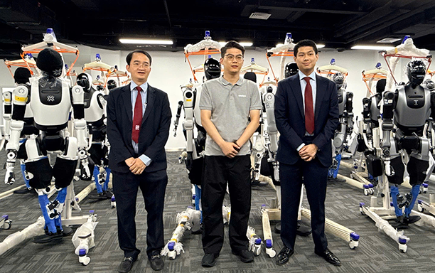 Đại diện ba đơn vị cùng tham quan và tìm hiểu hệ thống sản xuất robot tại nhà máy của UBTech. Ảnh: DTU