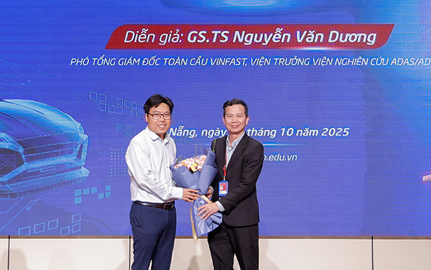 At the talk show “Automotive Technology Trends: Electrification and Autonomous Driving - Challenges and Opportunities for Young Engineers” on the afternoon of October 22, 2025, Prof. Dr Nguyen Van Duong, Global Deputy CEO of VinFast and Director of the ADAS/AD Research Institute who is directly involved in automotive technology R&D projects in both Vietnam and abroad, shared a wealth of valuable insights with DTU students.